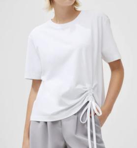 Vit kraftig rundhalsad t-shirt med dragsko i ena sidan nertill