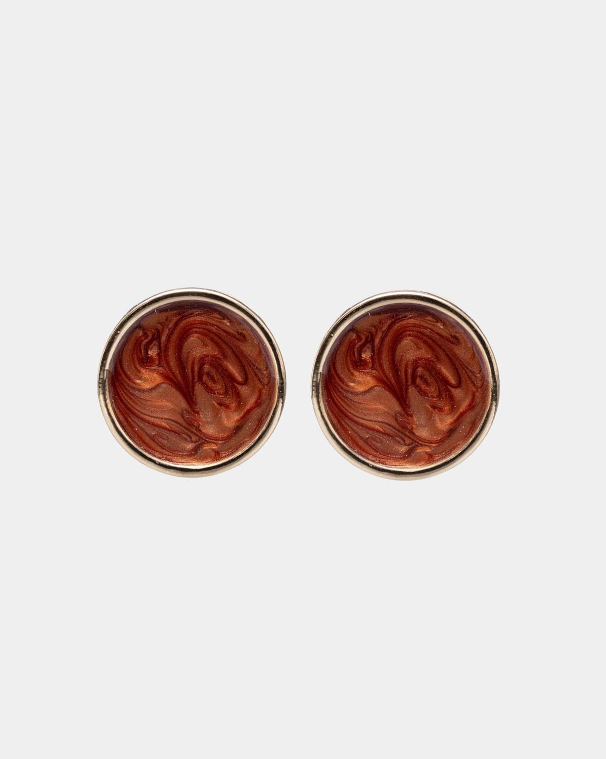 Runda bruna marmorerade örhängen med guldfärgade kanter.