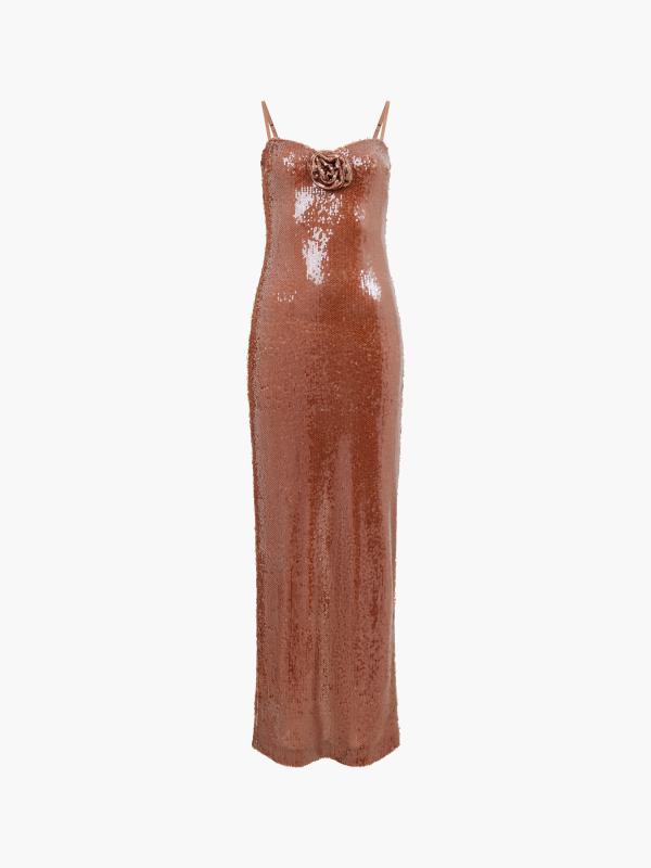 BEATRICE SEQUIN STRAPPY MAXI DRESS BROWN SEQUIN FRENCH CONNECTION