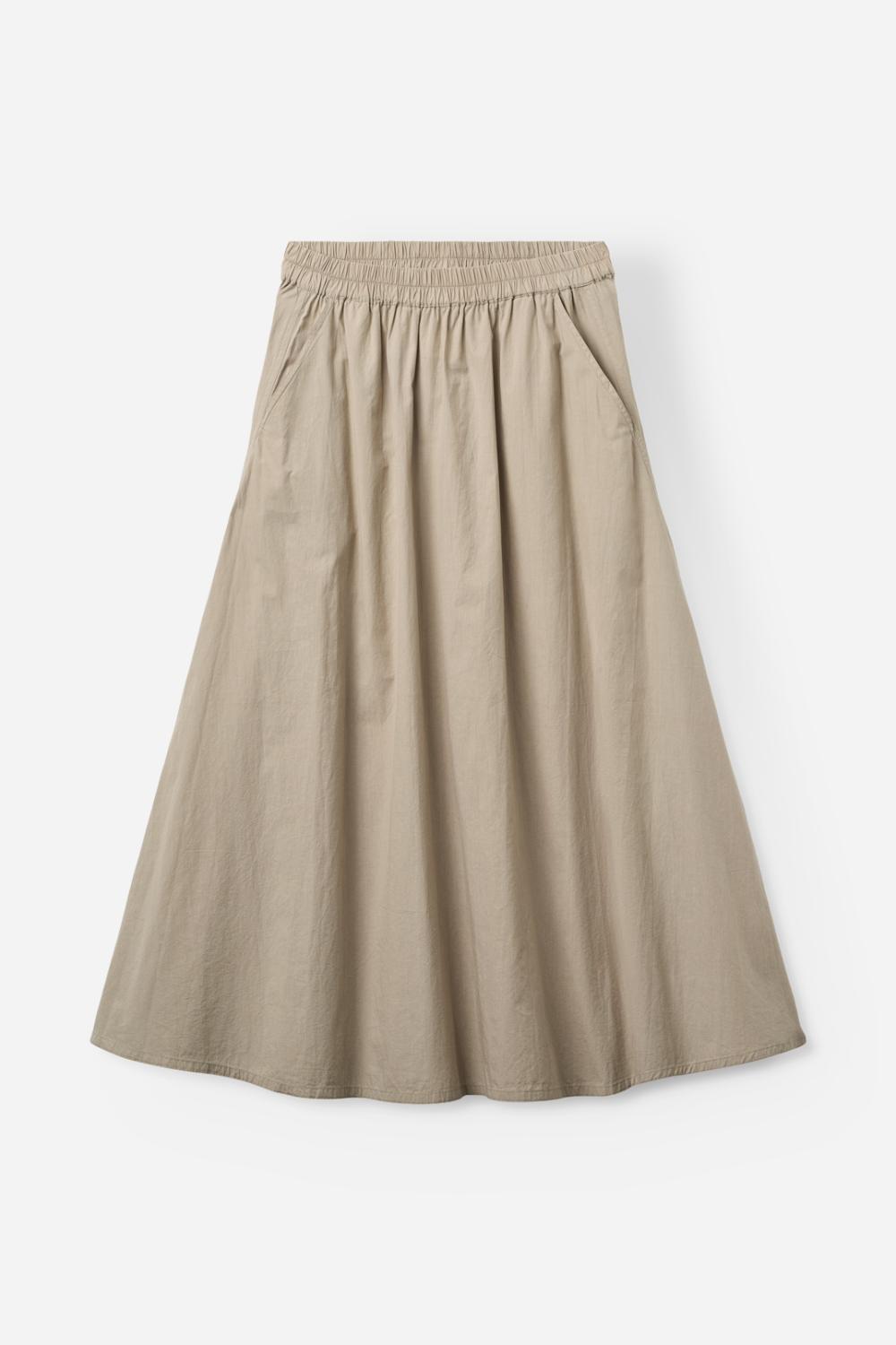 Khakifärgad utställd bomullskjol med resår i midjan samt två sidfickor fram.