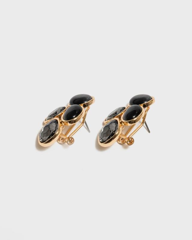Svarta klusterörhängen med stenar i olika storlekar och guldfärgade kanter.