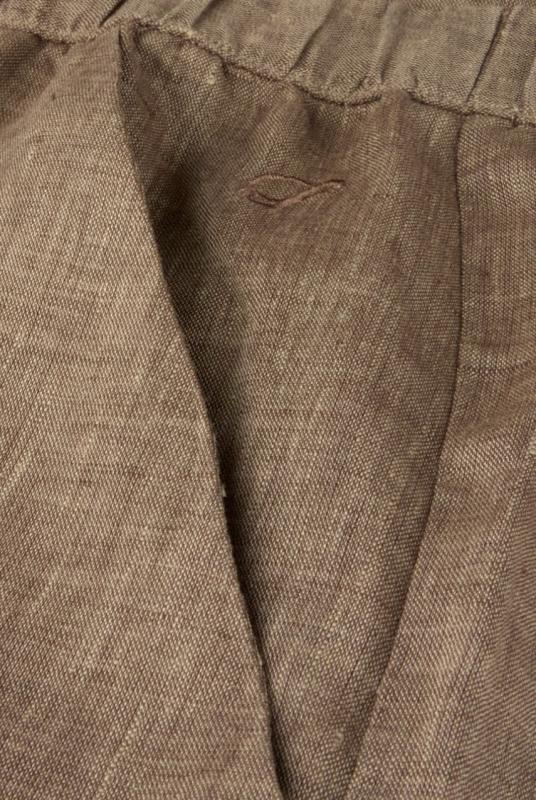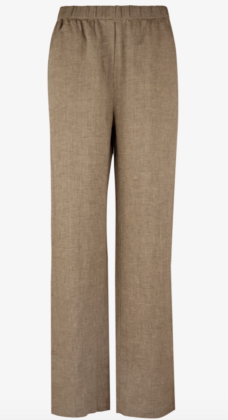 Ljusbruna raka linnebyxor med resår i midjan och fickor i sidan.