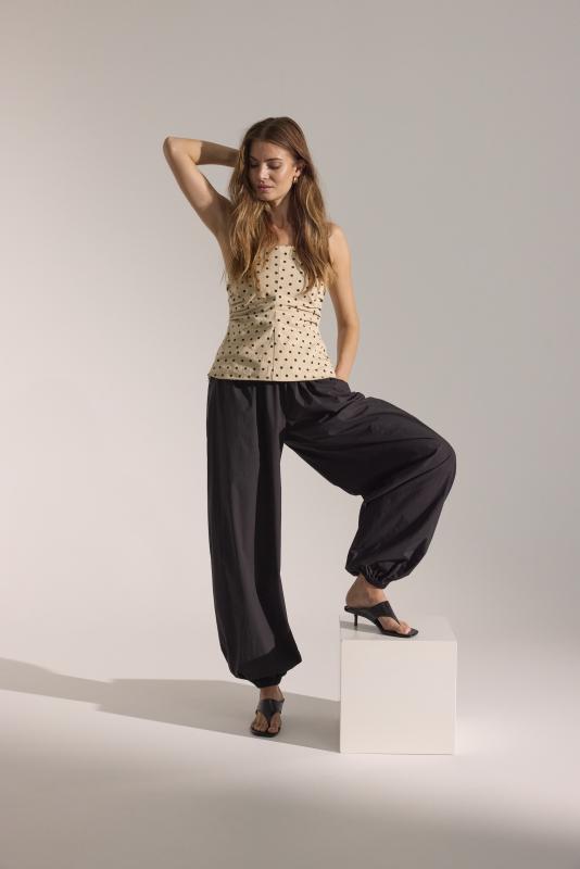 Svarta ballongbyxor med resår i midjan och i bensluten.