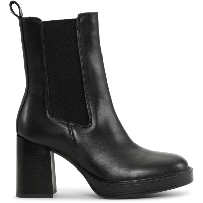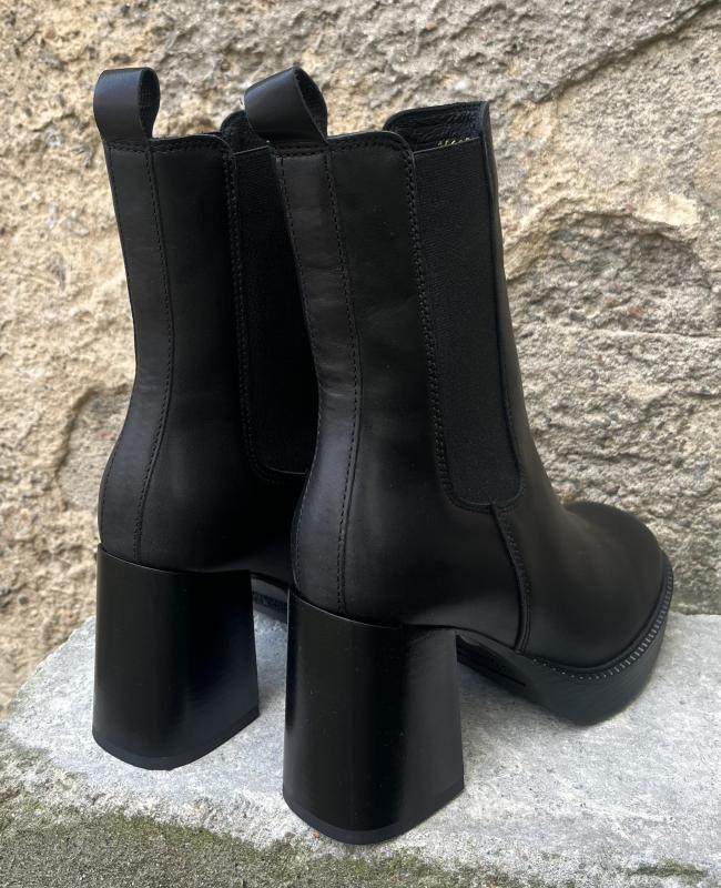 Svart stövlett med högt skaft och platåsula, 7cm kraftig klack.