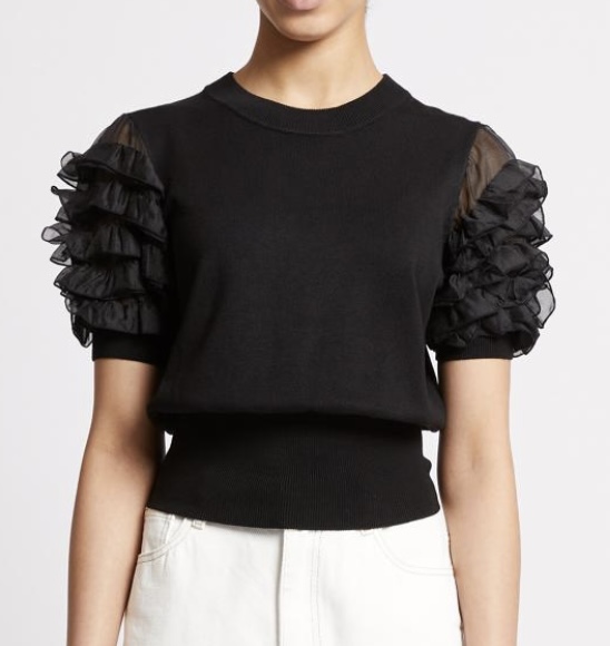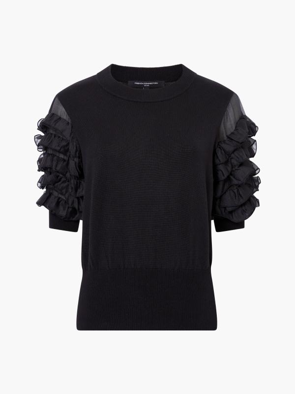 KRISTA MIX STACKED RUFFLE TOP BLACKOUT FRENCH CONNECTION