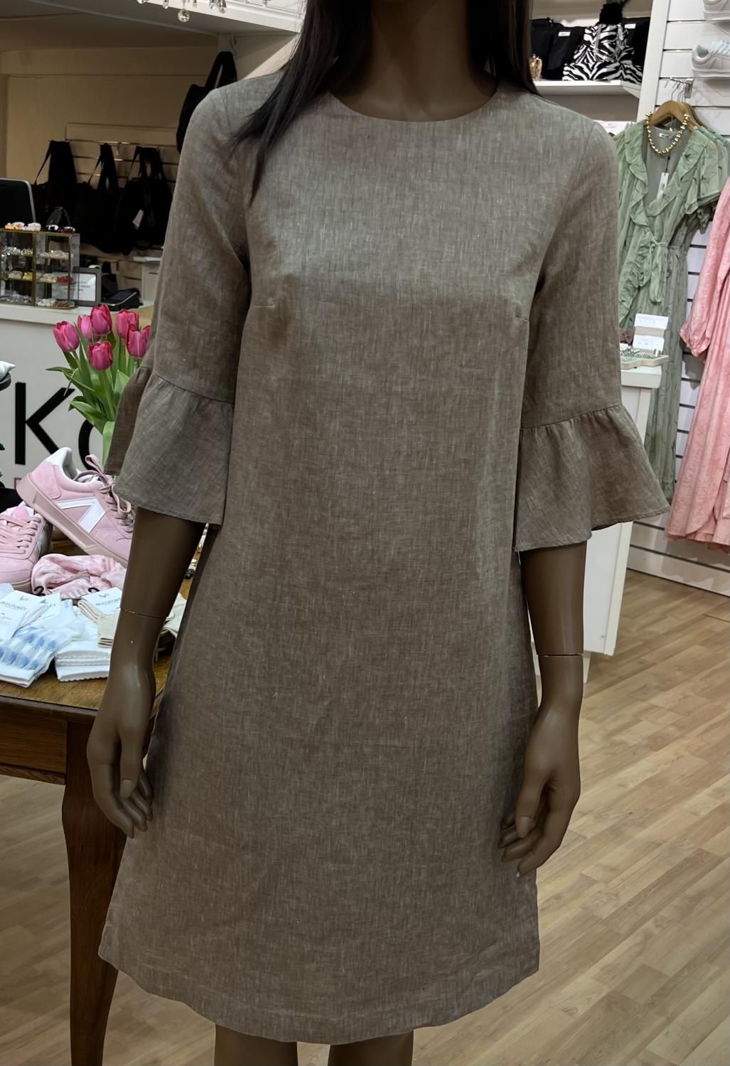 LINDSAY DRESS SLV FRIL LIGHT BROWN STENSTRÖMS