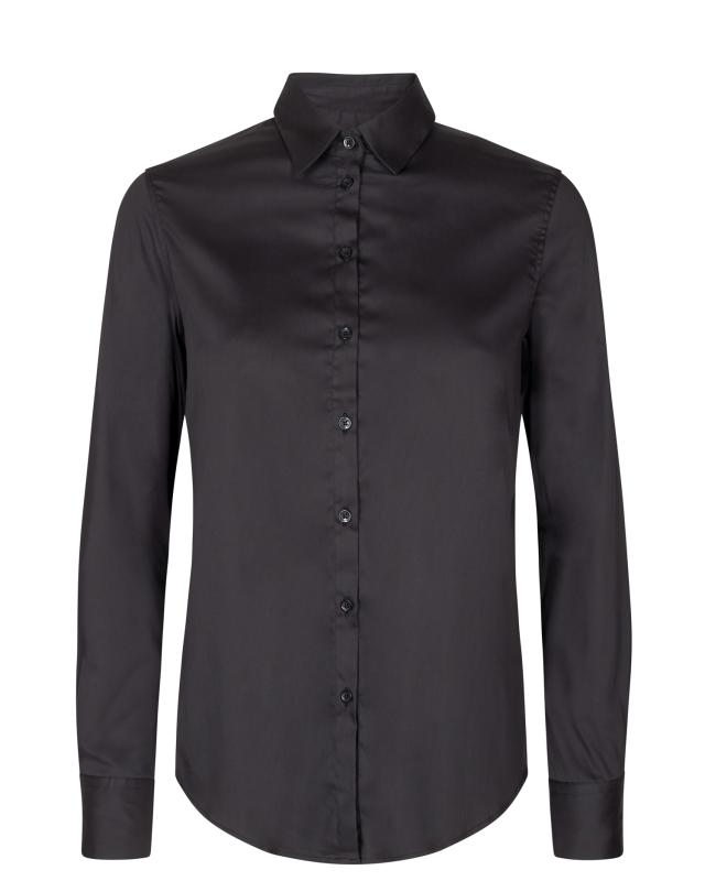 Svart skjorta i bomull (BCI better cotton initiative) i härligt satinvävd stretch