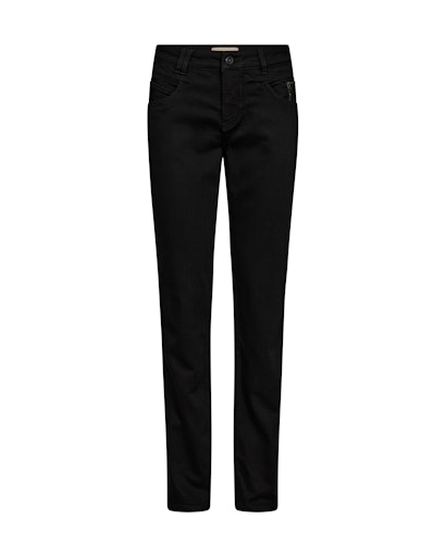Svarta jeans i rak modell med en liten dragkedja som detalj på vänster ficka.