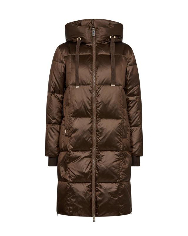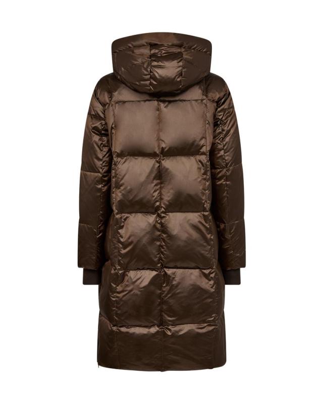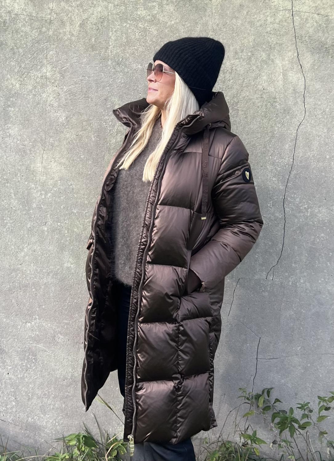 Dunkappa i glansig brunmetallic med fin luva/krage, detaljer ton i ton, logo band i luvan.