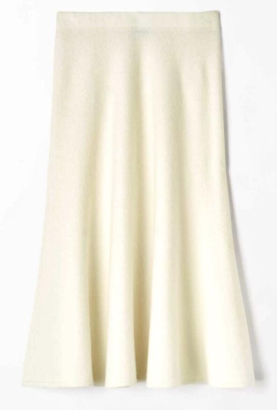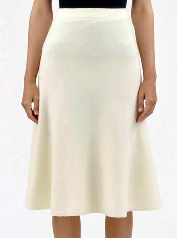 Vadlång offwhite kjol i "tovad" merinoull, klockad med resår i midjan.