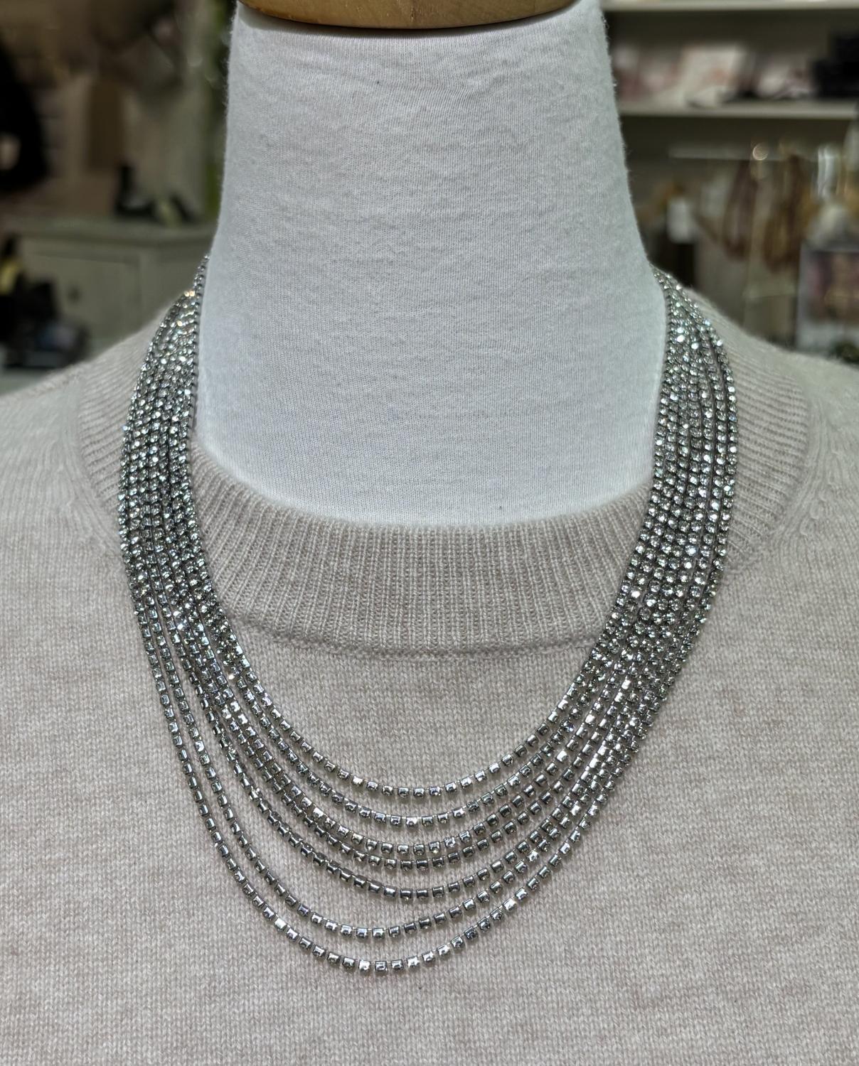 STRASS MULTI ROW NECKLACE SILVER BOW19