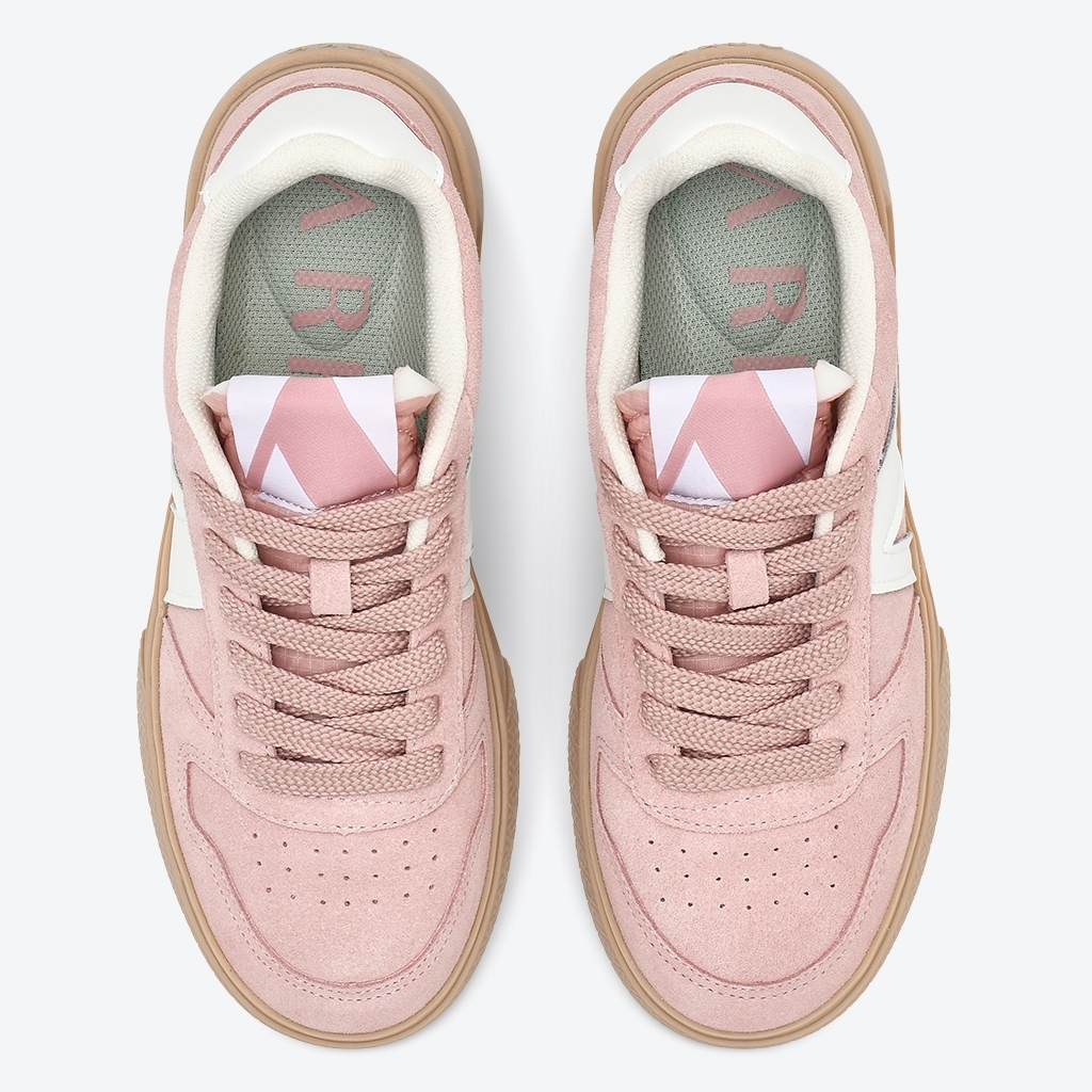 Ljusrosa sneaker med rågummisula och mockadetaljer i offwhite.