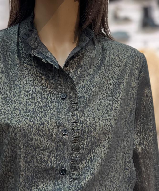 Svart/bronsfärgad skir blus med kråskant runt halsen