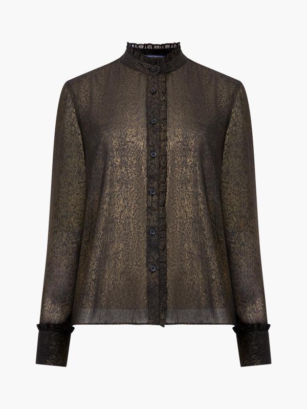 ALINA FOIL BLOUSE BLACK-BRONZE FRENCH CONNECTION