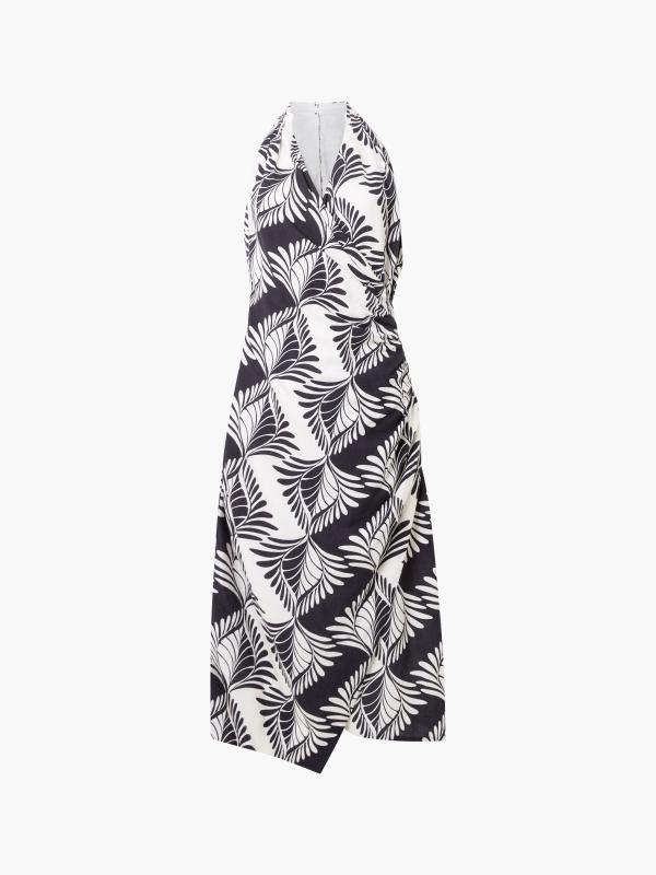 ARIETTE LIN BLEND DRESS BLACK/CREAM FRENCH CONNECTION
