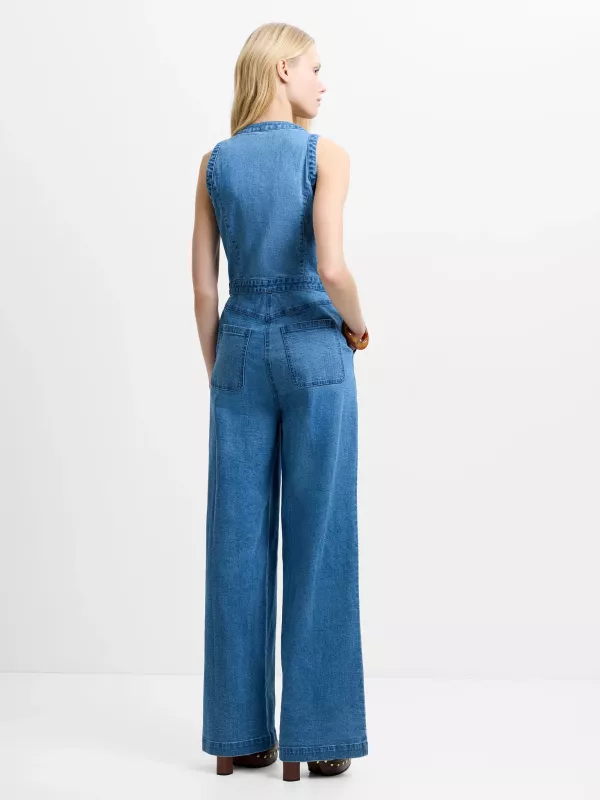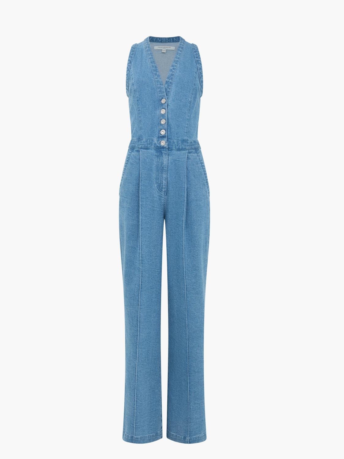 ARYWOODE DENIM V-NECK JUMPSUIT LIGHT WASH FRENCH CONNECTION