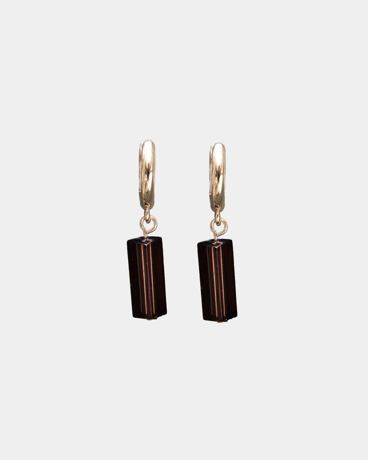 Guldfärgade hoops med mörkbrun rektangulär pärla.