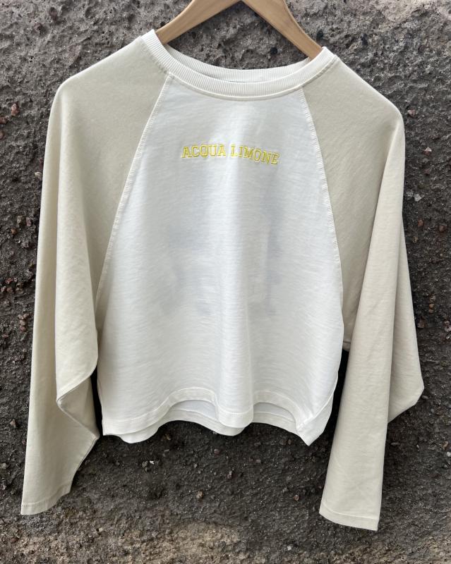 CROPPED VARSITY LS TEE ECRU/KHAKI ACQUA LIMONE