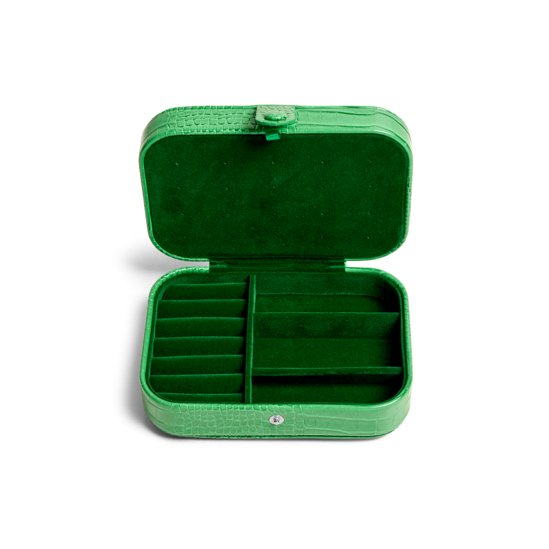 Croccopräglat grönt smyckeskrin.
