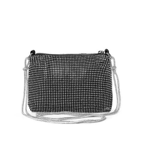 Liten strassväska med dubbla axelband i strass som avslutas med en dekorativ knut.