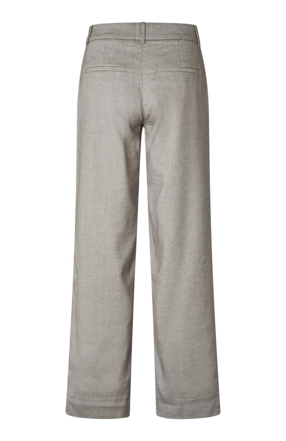 En dressad byxa i grön/beige färg med vida raka ben som släpper från rumpan.
