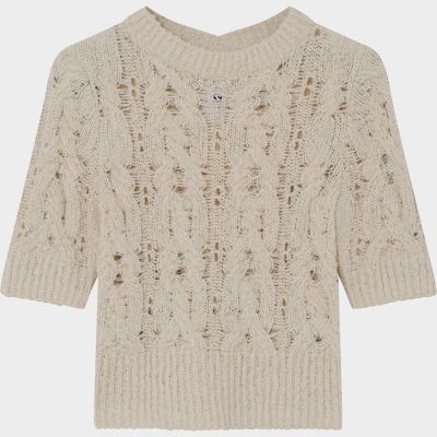 Kortärmad stickad tröja i offwhite med hålmönster.