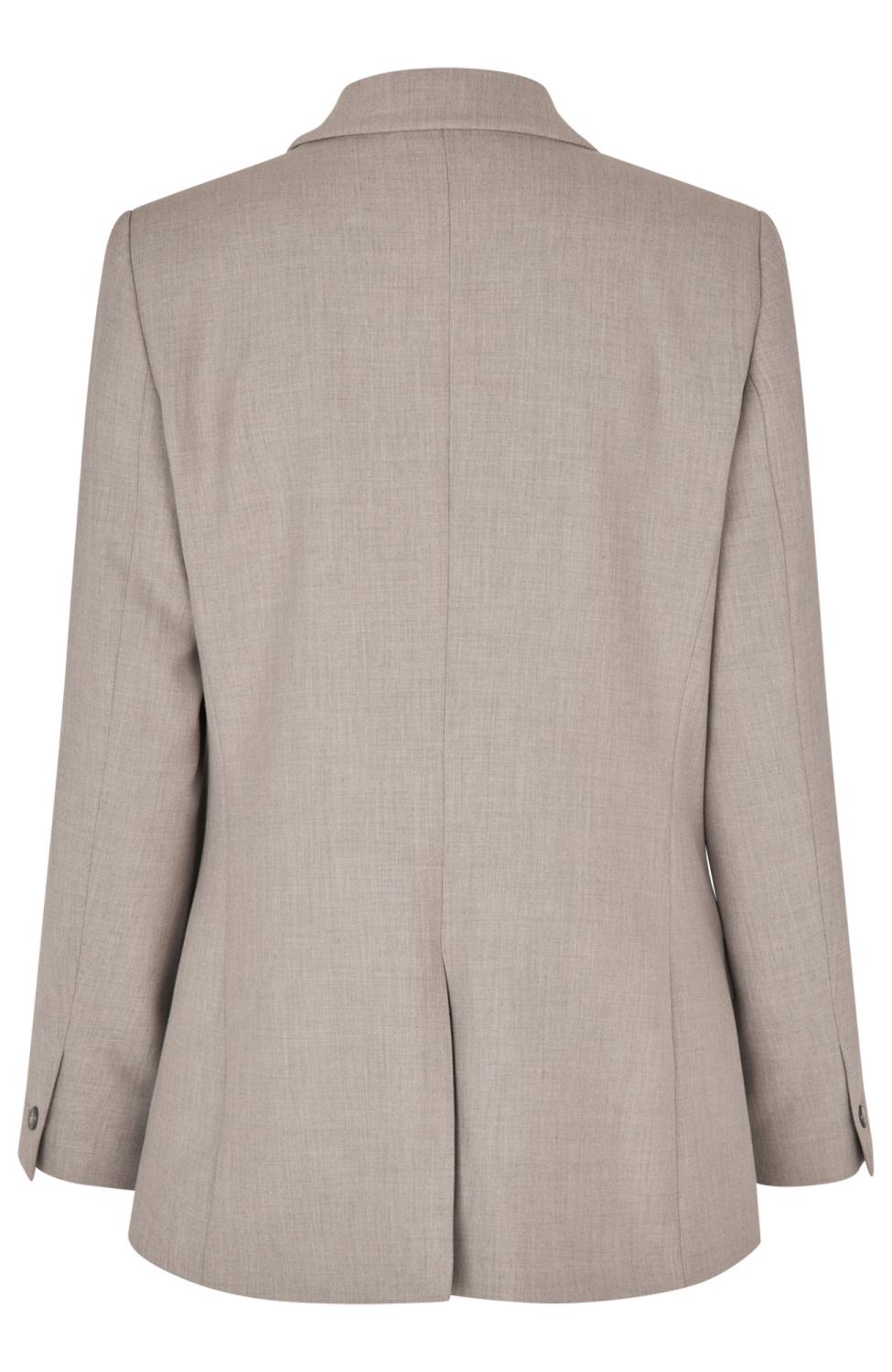 Beigemelerad enkelknäppt helfodrad kavaj, två fickor med lock fram.