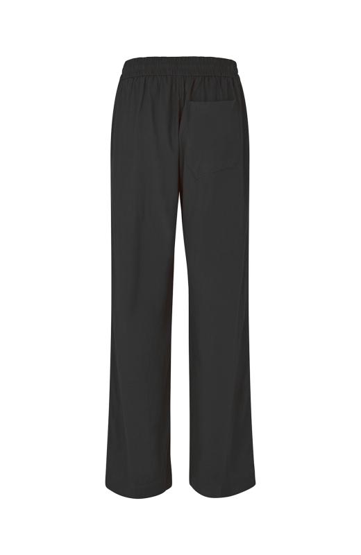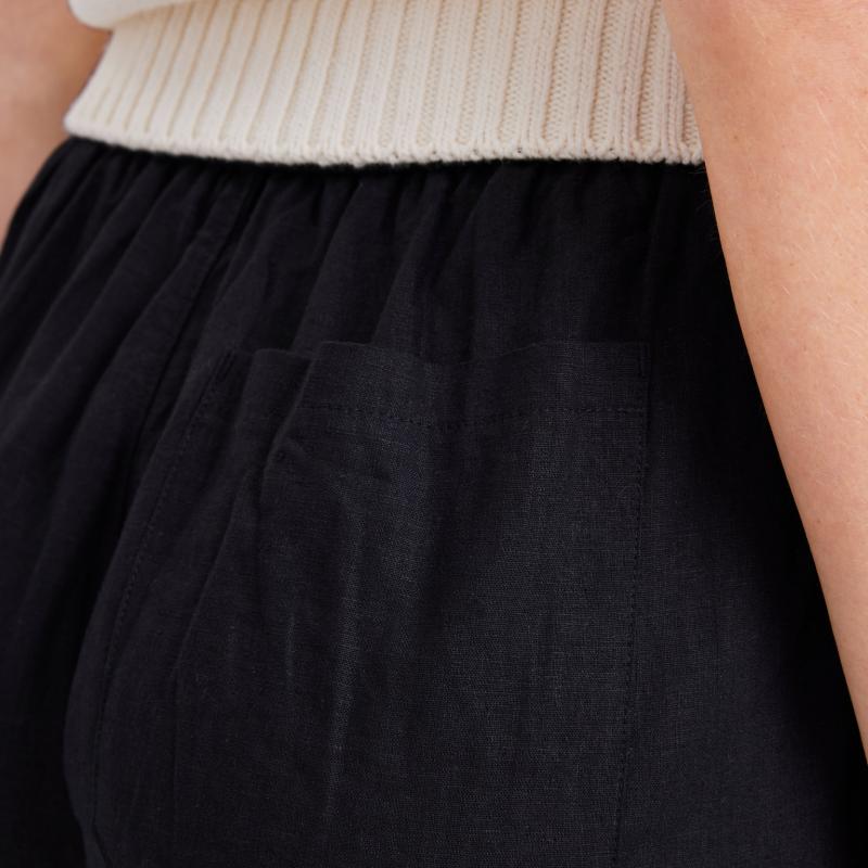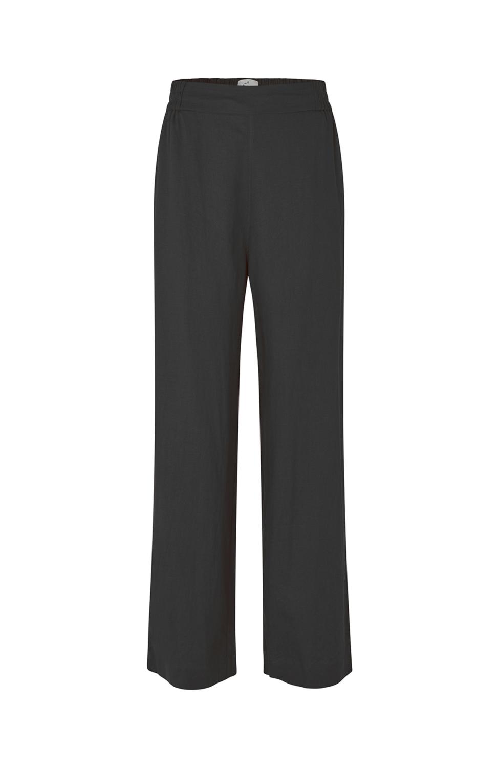 Svarta linnebyxor i rak modell med fickor i sidan och en ficka baktill.