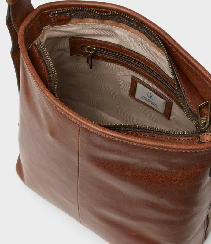 En tidlös, rymligt och praktisk axelväska i robust läder. Perfekt för vardagen men även snygg till speciella tillfällen. Tillverkad i högkvalitativ full grain-buffelläder, certifierat av Leather Working Group. Väskan är tillverkad i robust och högkvalitativt läder med en vacker, naturlig textur. Den har en matt och naturlig finish som bara blir vackrare med tiden. Öppna upp väskan med dragkedjan för att upptäcka ett rymligt huvudfack och en säker dragkedjeficka för värdesaker. Insidan är klädd med fodrad i 100 % polyester. Väskan försluts med metalldragkedja. Justerbar axelrem i läder, med en längd om max. 130 cm, min. 100 cm. Detaljer i mässingfärgad metall.