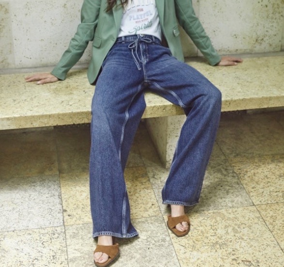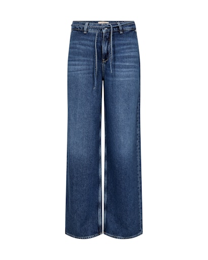 Mörkblå jeans med vida ben och hög midja.