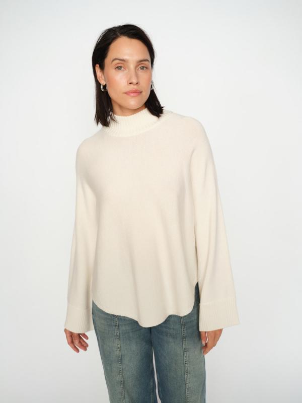 Ecrufärgad stickad tröja med hög hals och vida ärmar.