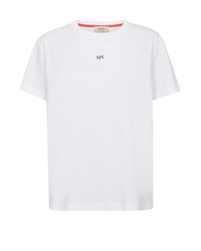 Vit t-shirt med svart liten logga fram och tryck bak.