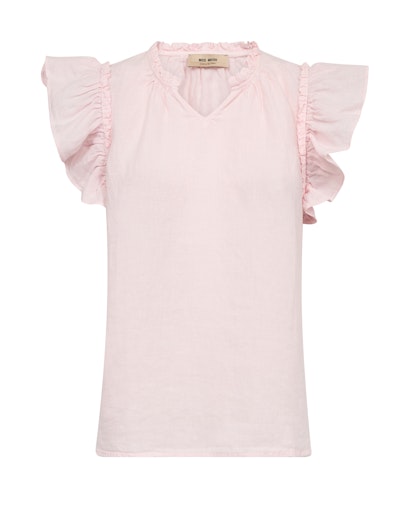 Ljusrosa v-ringad linnetopp med kort volangärm.