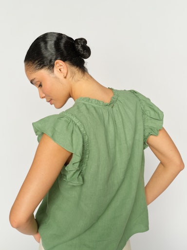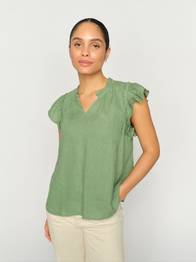 Klar grön v-ringad linnetopp med kort volangärm.