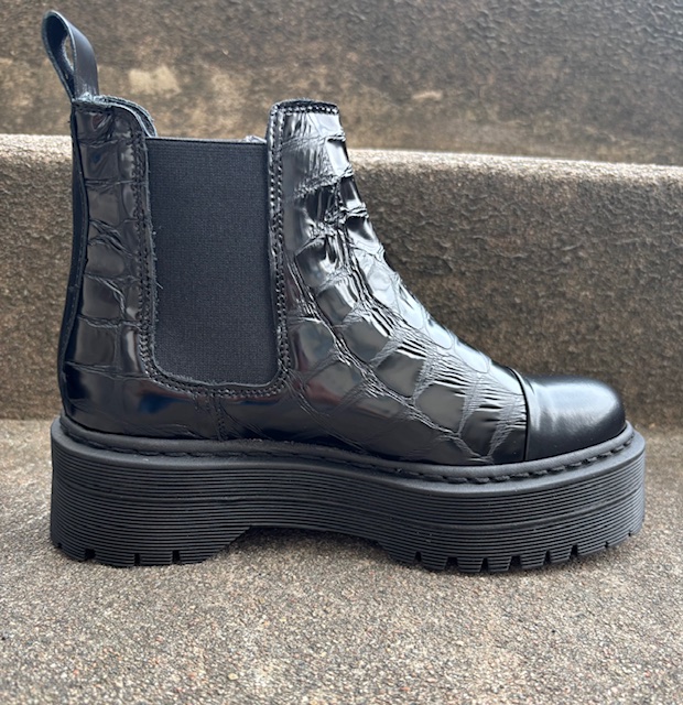 Svarta boots i krokodil material med svart stretchpaneler i sidorna och kraftig sula.