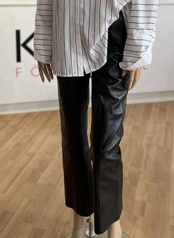 Ankellång svart skinnbyxa med dragkedja i sidan och fuskgylf fram.