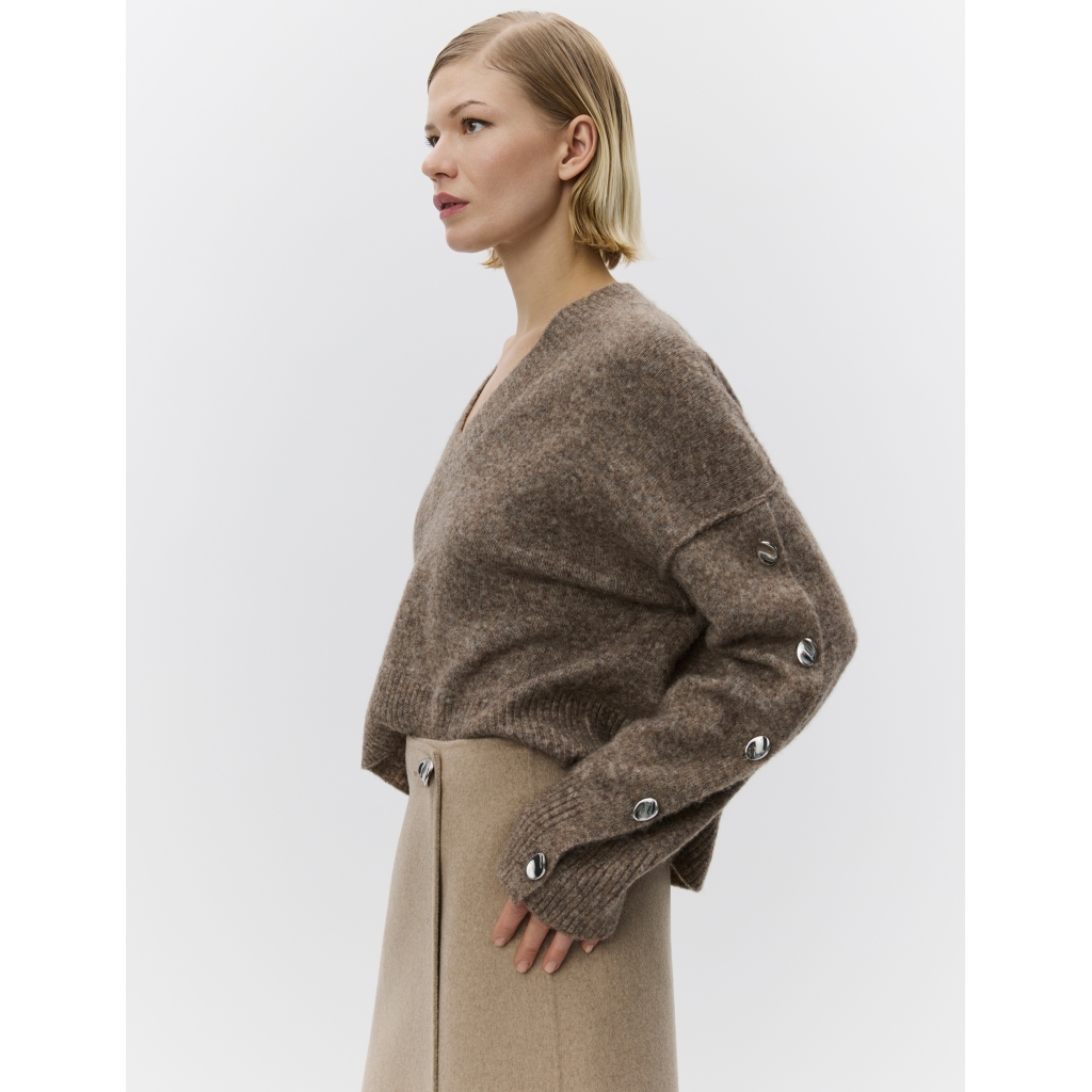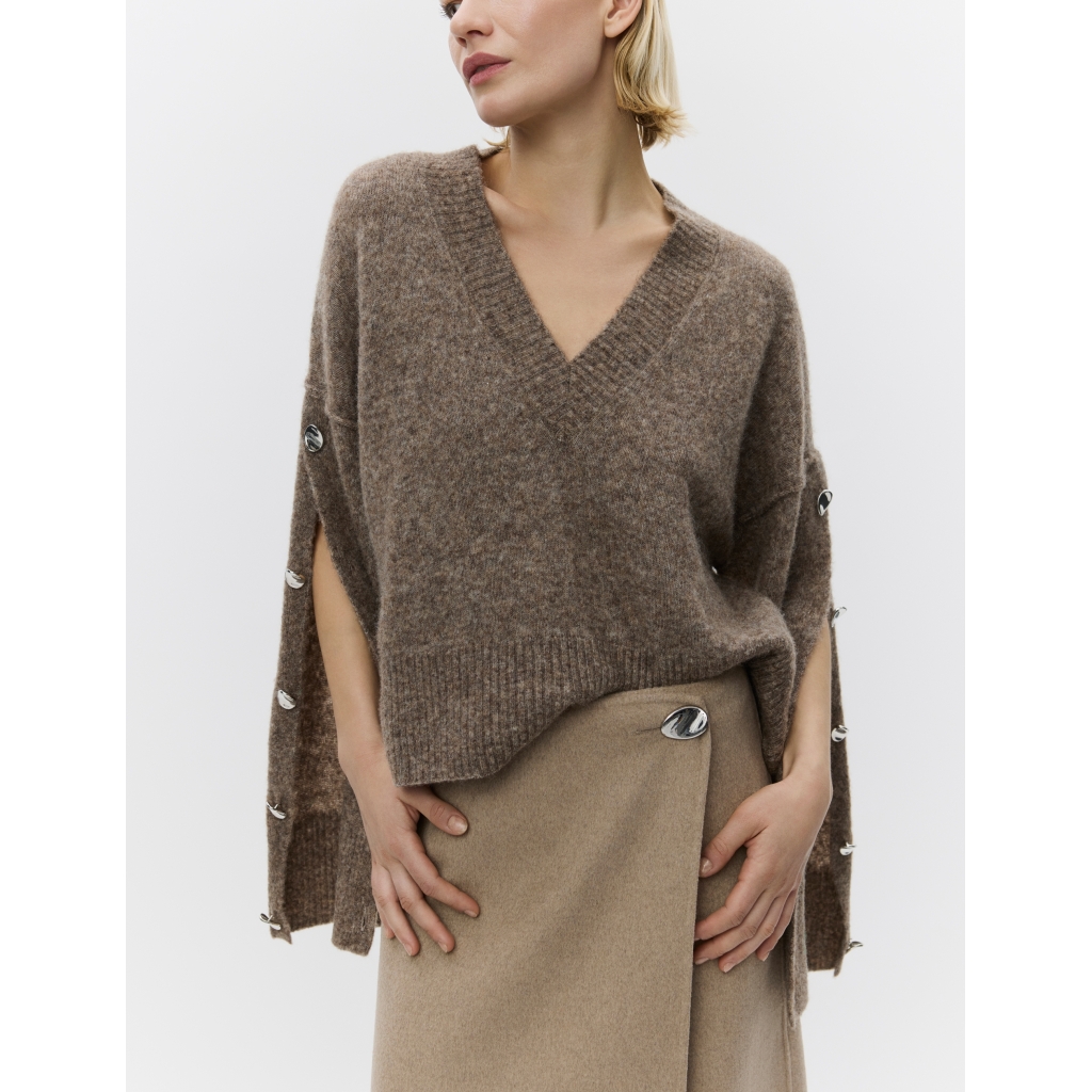 Öppningsbara ärmar med stora silverfärgade knappar.