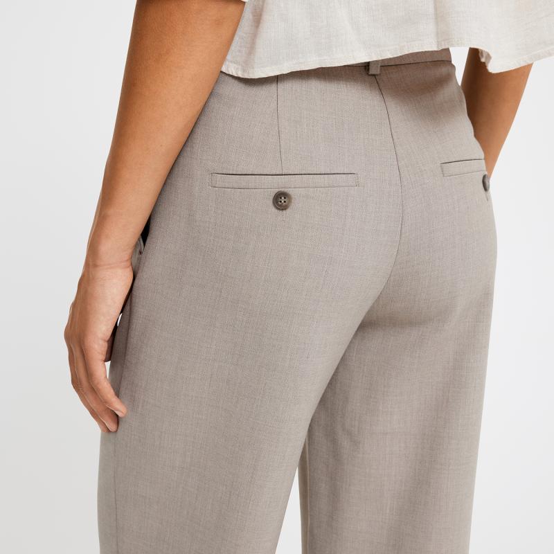Beigemelerad kostymbyxa med långa rakvida ben.