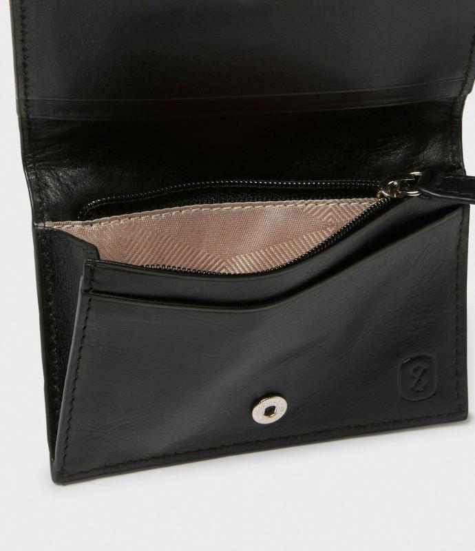 Fyra kortfack och ett myntfack med dragkedja på insidan.