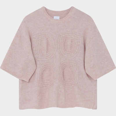 Kortärmad stickad tröja i ljusrosa med ton i ton logga fram.