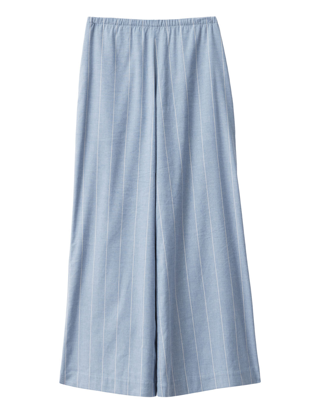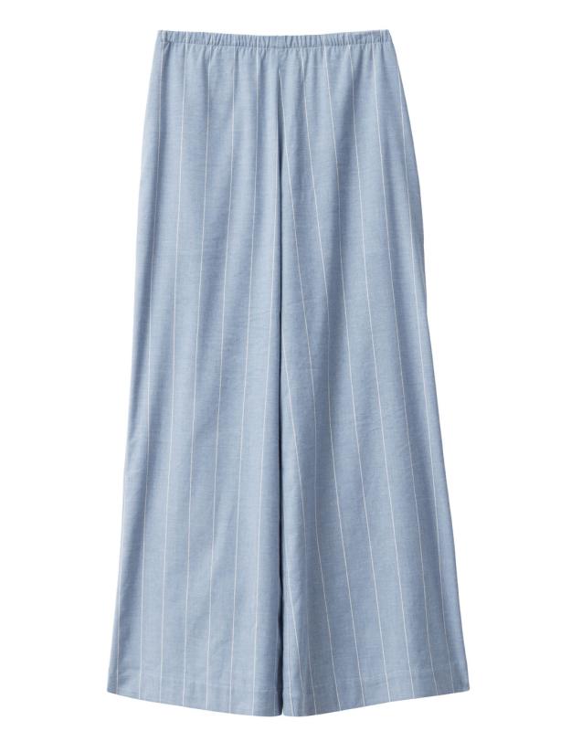 Ljusblå randiga byxor med vida ben.