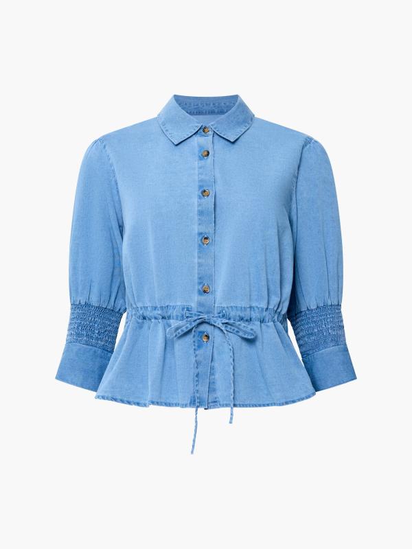 ZAVES CHAMBRAY DRAWSTRING TOP LIGHT WASH FRENCH CONNECTION